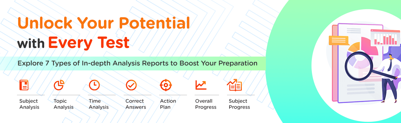 Get 7 Analysis reports on Subject, Sub-Topics, Time Taken, Correct Answer, Subject wise and cumulative progress.